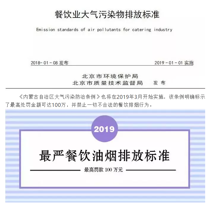 當然,更嚴格的數據標準伴隨著(zhù)更嚴厲的懲罰措施,如2019年1月1日北京正式執行新的餐飲油煙排放標準,該條例處罰金額比以往提高了20倍,罰金從10萬(wàn)元起步!嚴重者將被強制停業(yè)整頓!